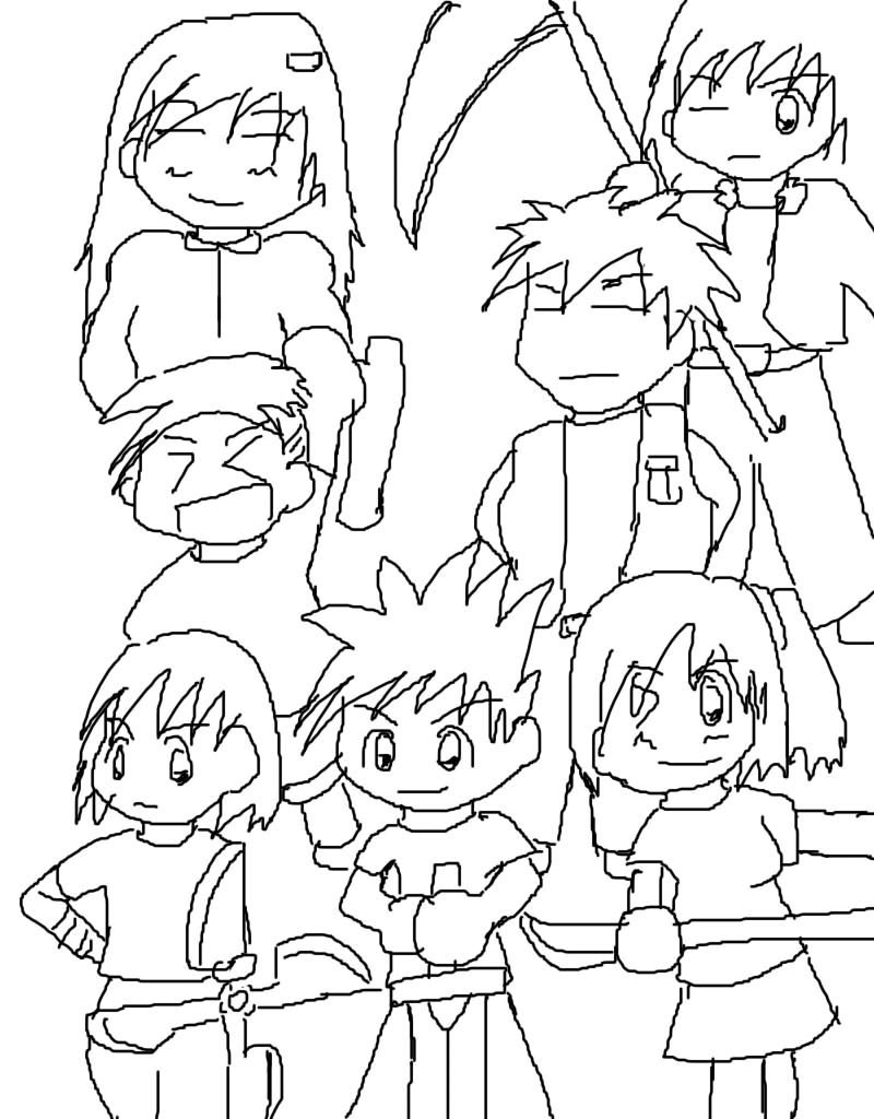 仮名:虹の子供達(本来の名前は造語カタカナにより流石にさらす度胸がなかった) ★手前真ん中の子 赤峰灯火(あかみね・ともしび) この物語の主人公。考古学者の父と二人暮らし。祖父母が開いている道場に通っており、彼が使う剣術はここで学んだものばかり。中学二年生。 武器:大剣 異世界での能力:炎 司る虹の色:赤 ★手前左の子 清村風馬(きよむら・ふうま) 灯火、なごみと3人で幼馴染コンビ。忍者に憧れていてそのあたりの造詣が深い。中学二年生。 武器:風魔手裏剣 異世界での能力:風 司る虹の色:青 ★手前右の子 橙堂なごみ(とうどう・-) 灯火のことを「とも君」と呼ぶくらいの仲良しな女の子。灯火の祖父母の道場に通っており、そこで女の子だからということで薙刀を習っている。中学二年生。 武器:薙刀 異世界での能力:癒(?) 司る虹の色:橙 ★真ん中左の子 黄林寺雷馬(おうりんじ・らいば) 風馬とは実の兄弟ではあるが、わけあってお寺に預けられている男の子。やんちゃかつ挑発的なことを言ってのけるところがある。確か小学4年生くらいだったと思う。 武器:トンファー 異世界での能力:雷 司る虹の色:黄 ★真ん中右の子 緑川樹林(みどりかわ・じゅりん) 灯火の従兄弟。いかつい体つきだが趣味は園芸。園芸はパワーだよ? 武器:斧 異世界での能力:樹 司る虹の色:緑 ★後ろ左の子 藍沢瑞樹(あいざわ・みずき) 紫苑の彼女。特にそれ以外は考えてなかった。なお、付き合い方は瑞樹の方が押し気味なようだが基本的にどちらもおとなしいので案外うざくない。 武器:杖 異世界での能力:水 司る虹の色:藍 ★後ろ右の子 紫苑音也(しおん・おとや) シオングループの御曹司(だった気がする)。風馬もクールな方だがそれ以上にクール。 むしろ灯火くらいしか熱すぎる男はいないんじゃとかなんとか。 武器:鎌 異世界での能力:音(と死) 司る虹の色:紫 ★あとここにはかかれてないけど ・身分を隠したお姫様とその付き人がいるよ ・FLEEZEと言う名の盗賊団と共闘したりするよ ・盗賊団は女頭領に「ツバキ」、副頭領の「ヒイラギ」、他に「カズラ」とか植物の名前をコードネームにした奴らばかりいるよ ★なんか導入部っぽいところ 灯火、なごみ、風馬の3人はいつも仲良し。そんな3人はある日、灯火の父の倉庫で不思議なツボを発見する。 「なんだろうこれ」と思いのぞいてみたら3人はそのツボに吸い込まれ。 気づいたら、手に武器を持って、見知らぬ森で倒れていた。 そこで一組の男女と出会い、物語は加速する。